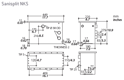 | 4472240 | T-PF.SPLIT/NKS230V | Sanisplit NKS 230V SS Grey Water Transfer Pump |