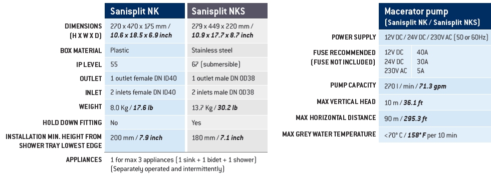 Tecma Sanisplit NK - Grey Water Transfer System - Suitable for Installation Above Sea Level
