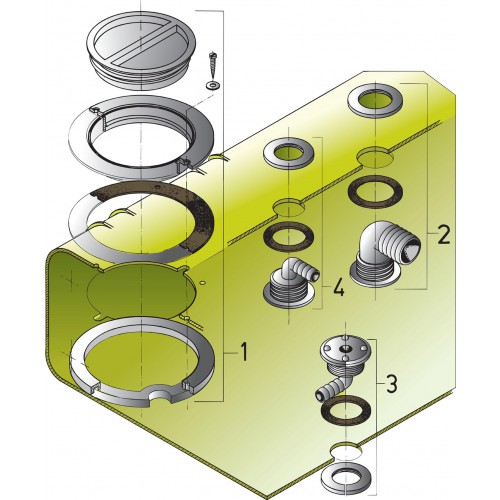 Complete with gasket, counterflange and fastenings. Only suitable for waste and water tanks, not for fuel tanks.