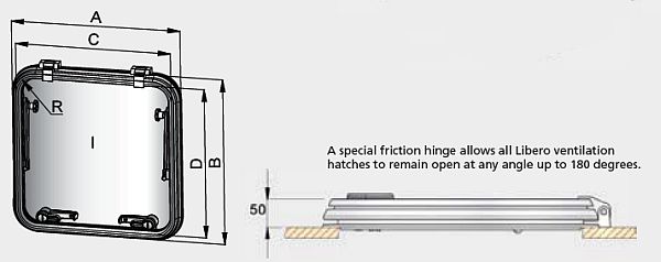 Note: The Part Number for the HCM screen to suit this hatch shows in the table below under Specifications - *Libero Only with 55 mm radius.
