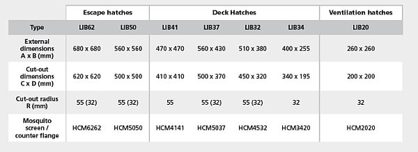 - All VETUS hatches from the Altus, Magnus, Libero* and Planus ranges can now be supplied with an adjustable depth trim complete with mosquito screen.