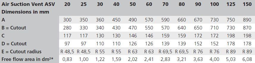 The ASV050A vent frame is polished and grilles are naturally anodised aluminium. Model number relates to the engine horsepower for which it is suitable.