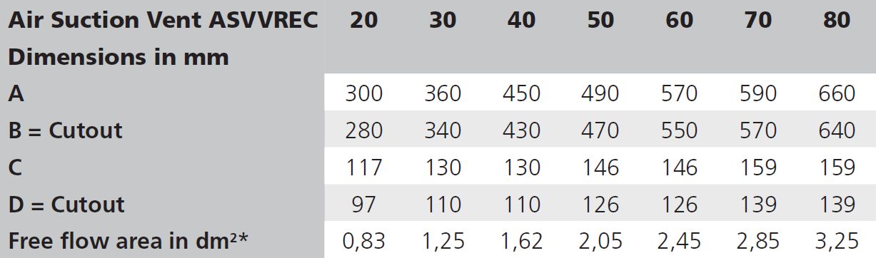 The ASVREC20 Rectangular vent frame is polished and grilles are naturally anodised aluminium. Model number relates to the engine horsepower for which it is suitable.