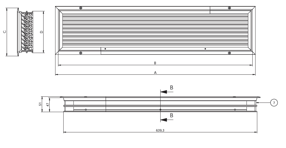 - ASVREC70 - 590 x 159mm OD* - Polished Aluminium Frame with Naturally Anodised Aluminium Grilles