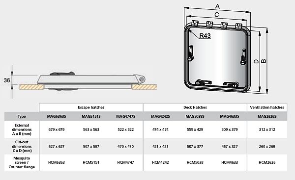 - The aperature dimensions (cut-out sizes) of Magnus hatches conform with many of those that are current in the market.