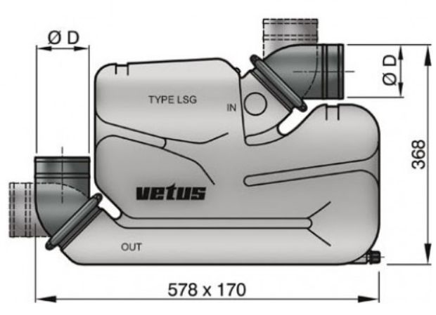- LSG60 - Vetus Plastic Waterlock LSG60 - Rotating Inlet and Outlet 60mm - 17L Capacity