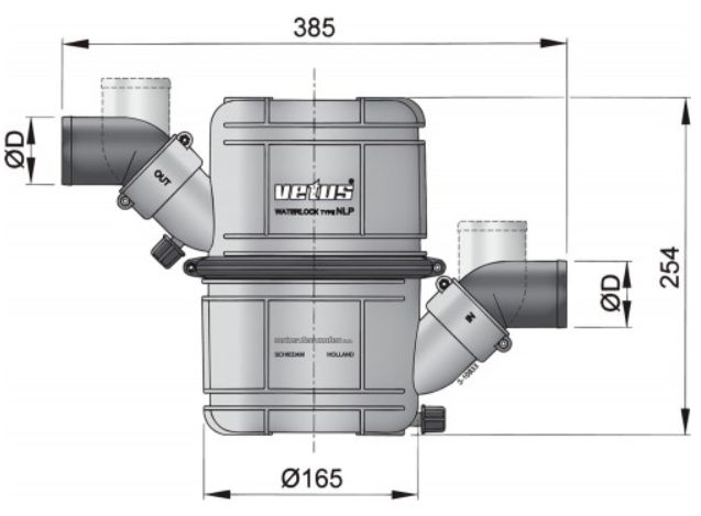 - NLP45HD - Vetus Plastic Waterlock-Muffler NLP45HD - Heavy Duty - Rotating 45mm Inlet and Outlet - 4.5L Capacity