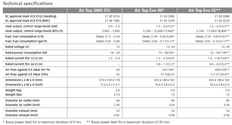 KTHBOAT-3OUT Air Top 2000 STC D 12V 3 outlet boat kit Yes Option