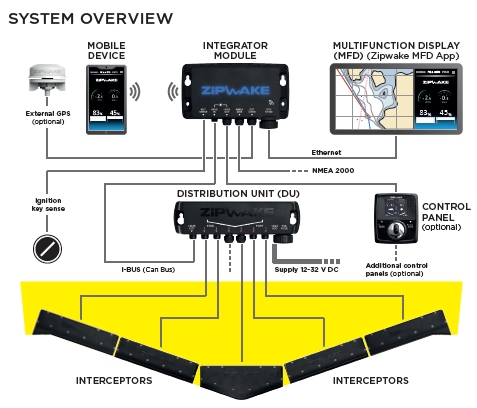 Create your perfect set-up. The Integrator Module seamlessly connects the Zipwake system to multiple MFDs from different manufacturers – and even connects wirelessly to smart devices – keeping dashboards free of clutter. But it also offers the flexibility of connecting up to 3 control panels for operation via control wheels in addition to touch screens. A CAN interface enables further external system integration.