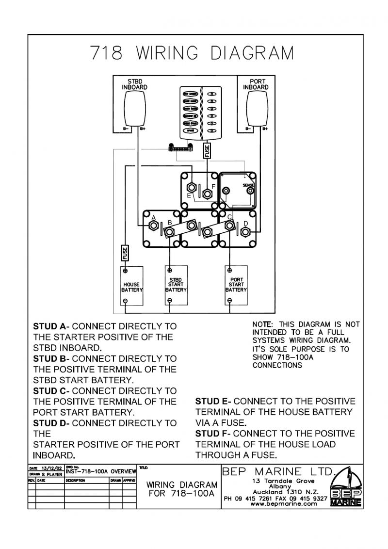 THE 718 SYSTEM INCLUDES dedicated battery switches for each bank and a 710-140A voltage sensitive relay (VSR). The VSR allows for two batteries to be charged at the same time. When the engine is started, and the start battery reaches 13.7 Volts, the relay closes, Combining the battery banks (Port start and house) and allowing them to be charged simultaneously. When the engine is stopped and the voltage drops to 12.8 Volts, the relay will open separating the batteries. This system eliminates the possibility of draining the wrong battery and protects sensitive electrical equipment powered from the house battery from harmful engine start up spikes. The 718 cluster is designed for twin inboard systems when it is not practical to have both engines alternators in parallel because of the types of regulators used on these alternators.