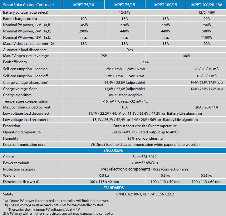 Victron BlueSolar MPPT 75/15 Solar Charge Controller - Solar Panel Regulator (SCC010015050R)