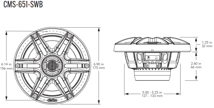 Clarion 6.5 inch CMS-651-SWB 30W Marine Coaxial 2-way Water Resistant Speakers – Sports Grill (16031-001)
