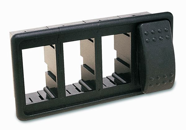 Modern styled rocker switches that blend in with the mounting panel to be less obtrusive visually than toggle type switches. Single pole switches rated to 20 amps at 12 volts, available with or without internal illumination.