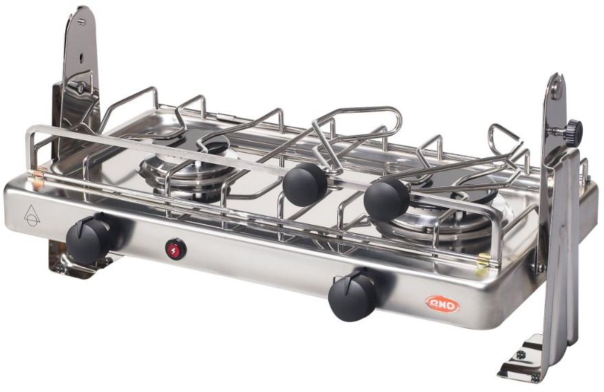 Compact and lightweight, the DUO is designed for use on boats. It features a large rapid burner and a second medium burner.