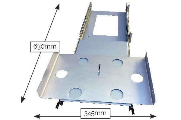 Size. 345mmW x 95mmH x 630D – BBQ sits up 60mm from the bottom of the slide