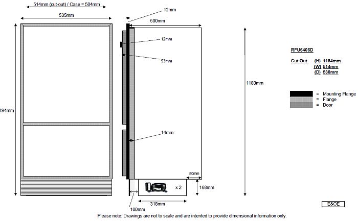 - 1184 mm (H) X 514 mm (W) x 530 mm (D)Â