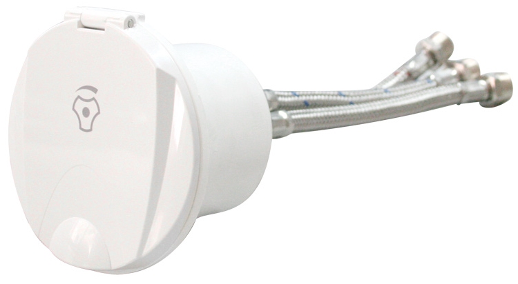 Nuova Rade Italian made "Premium" transom shower sets incorporate stylish design, durability and functionality. A “click” confirms the hinged cover is tightly closed, preventing the shower hose from uncoiling and potentially getting caught in the propeller. Available with white or chrome covers, the housing fits snugly in any deck or transom to give a neat, clean look. The single housing sets include the cover with shower symbol, 3 metre shower hose, shower spray head and cover - or the housing with tap symbol and chrome brass mixer tap with 200mm 3 hose connections to allow both hot and cold water. Installation is relatively simple and they are made from durable UV resistant ASA plastic material with a 316 stainless hinge pin for long and maintenance free life. Your existing galley pressure pump can be used to supply the water. They are available in single or twin housing in either white or chrome, in different confi gurations.