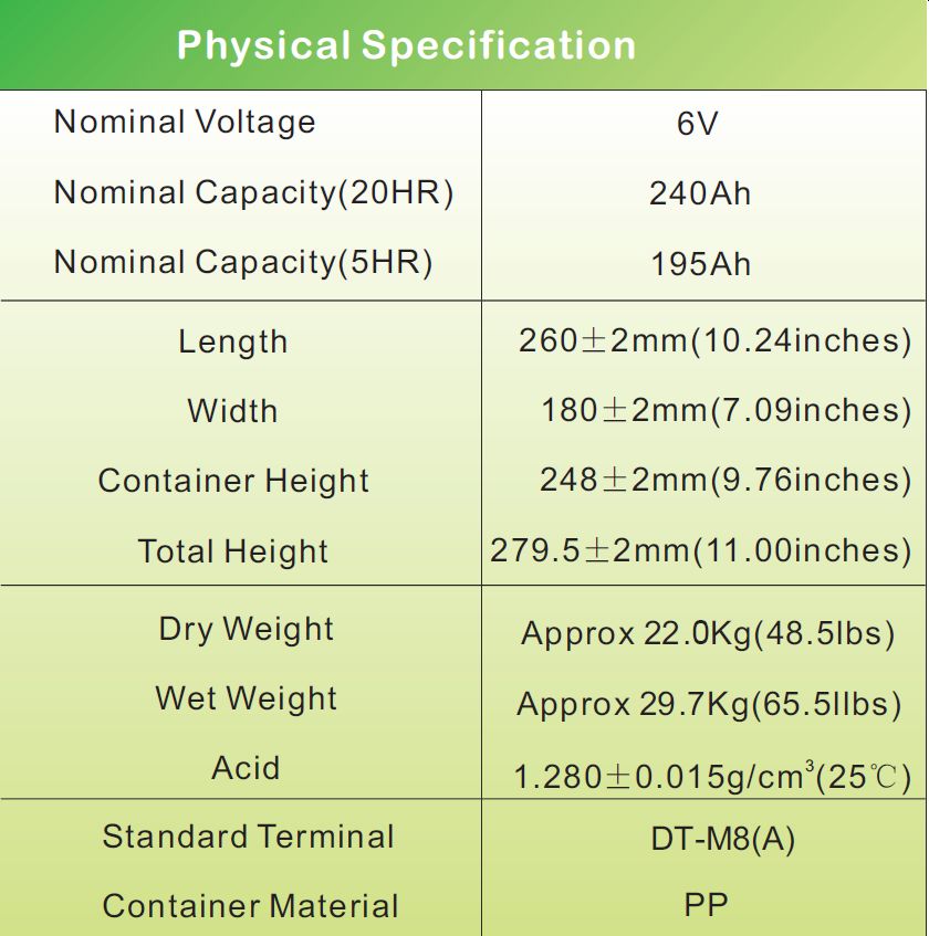 Industrial Quality Heavy Duty Cycling Battery (SY6GC-240)