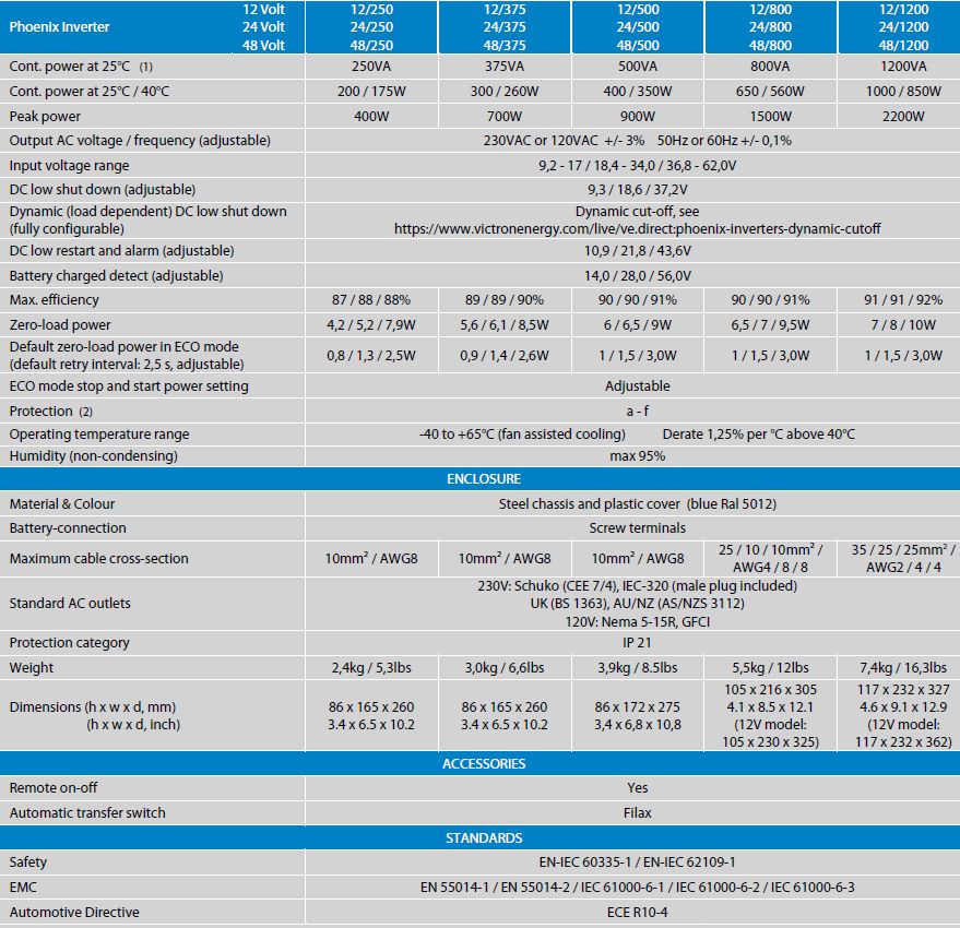 Victron Phoenix VE Direct Inverter – 24V -1200VA (1000W) 230VAC (PIN242121300)